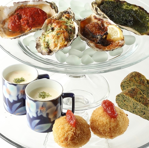 生牡蠣をはじめ新鮮な旬の食材を使用したお料理をフォトジェニックに盛り付け♪当店の看板メニュー!