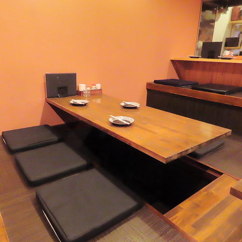 大人気の掘り炬燵席。木目調で落ち着いた雰囲気を演出。宴会や女子会、お誕生日にも旨い焼き鳥で乾杯。
