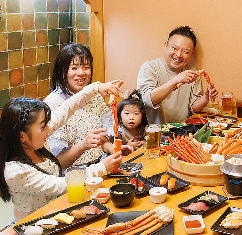 ズワイ蟹・寿司・海鮮丼・おつまみ・揚げ物などが100分間食べ放題★友人と、会社の人と、家族でのご利用もOK!小学生以下のお子様は子供料金でご利用頂けます♪