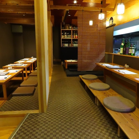 ゆっくりとお食事をお楽しみ頂ける、掘りごたつの半個室。会社帰りの一杯にはもちろん、デートにもおすすめです◎ご利用は事前のご予約が確実です。