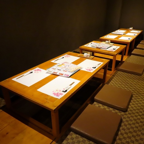 ゆっくりとお食事をお楽しみ頂ける、掘りごたつの半個室。会社帰りの一杯にはもちろん、デートにもおすすめです◎ご利用は事前のご予約が確実です。