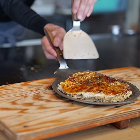 特製のオリジナル麺やオリジナルブレンドソース、その日のキャベツの糖度によってもレシピと焼き方を変えています。その他の食材にもこだわり、隠し味がさらにお好み焼きを引き立てます!!