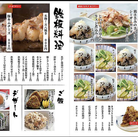 看板メニューはもちろん、鉄板料理や一品料理にもとことんこだわります!!