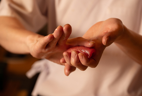 囲まれたカウンター席は正に圧巻。目の前で職人が仕立てる姿を見ながら愉しむ贅沢…
