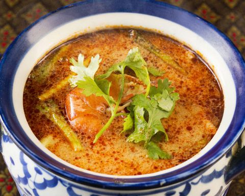カニの食感が堪らない『ソフトシェルクラブのカレーソース炒め』1350円(税込)や鶏肉のココナッツミルクスープ『トムカーガイ』900円(税込)は女性に大人気♪