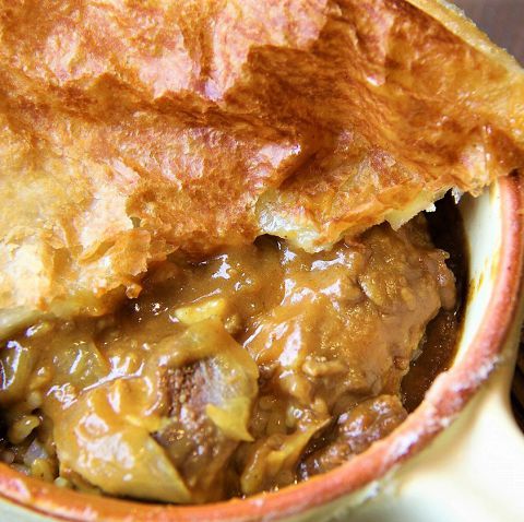 あつあつピリ辛の焼きカレーに、甘さのあるパイ生地をのせ、辛いものが苦手でも不思議とそうは感じさせない風味に。一人で“ペロッ”と食べられる男性も。