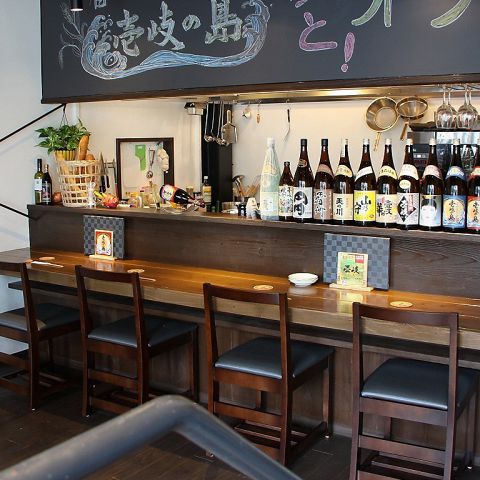お一人様でも気兼ねなく、気軽に立ち寄れるカウンター席は広々としているので周りを気にせずお寛ぎいただけます。