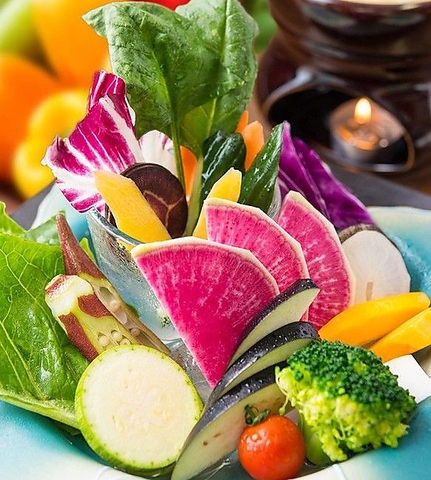 季節の温野菜たっぷり!ホクホクでジューシー色とりどりの野菜を使っております。温かいソースでどうそ!