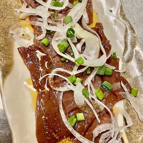あまり見たことがない人も多いはず!馬肉のカルパッチョ☆臭みのない馬肉、口に広がる深みのある味わいが特徴です!醤油ベースの和風ソースとバルサミコ&チーズの洋風ソースの2種類からお選びいただけます!