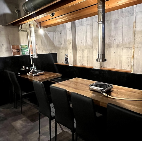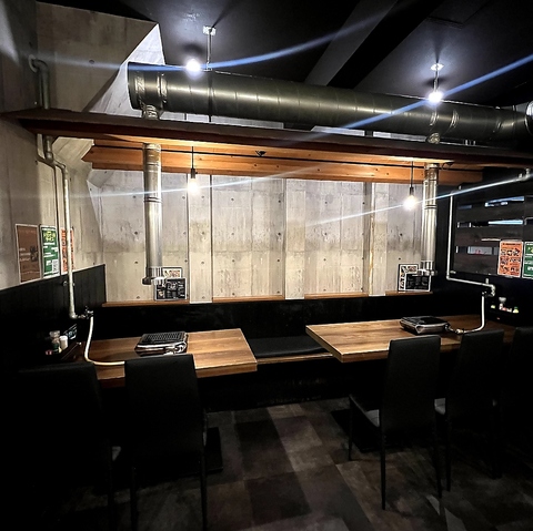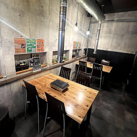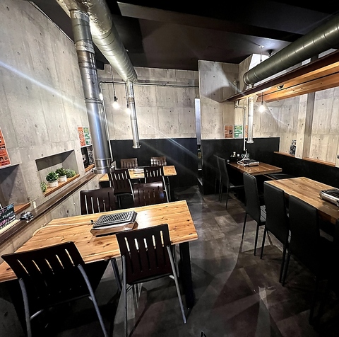 コンクリート調の壁紙で落ち着いた雰囲気の店内となっております。ファミリー、友人、カップルでも、ゆったりと食事をお楽しみいただけます!