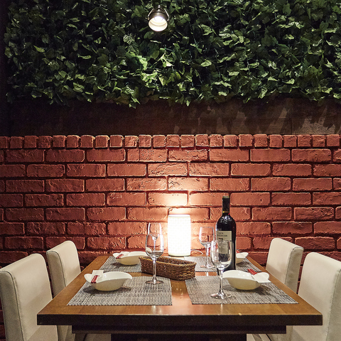 店内は緑とレンガを基調としたお洒落な雰囲気。モダンな雰囲気の個室は2名様~ご利用可能で多数ご用意!大人気のVIP個室もございます。各種宴会、女子会、合コン、誕生日、記念日、デート、忘年会、新年会、歓迎会、送迎会などにオススメ!