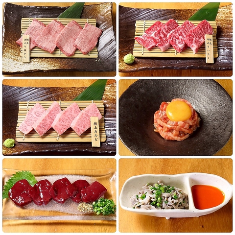 極上和牛肉だからこそ味わえる、違いがわかる素材自体の味をお楽しみいただけます。岩塩や自家製しょうゆダレなど各部位ごとに違う、当店おすすめの食べ方はお肉のおいしさを最大限に引き出します。