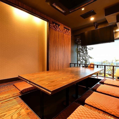 宴会や観光のお食事に最適な、完全個室の掘りごたつ席を完備しております。少人数から最大40名様まで、周りを気にせずプライベートな空間でゆったりとおくつろぎいただけます。もちろん大人数の団体様も大歓迎です!また、目の前で調理風景を楽しめるライブ感満載のカウンター席もございます。お一人様やデートにもおすすめです♪