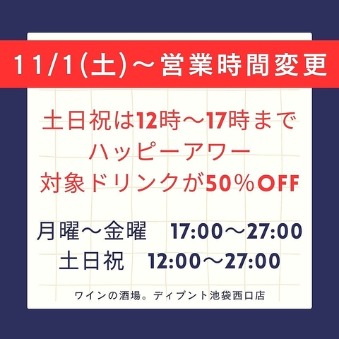 | 店名 | ワインの酒場。ディプント池袋西口店 |