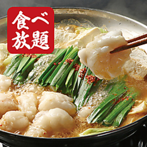 こま源自慢のこだわり出汁の絶品もつ鍋食べ放題ができる鶏料理コース実施。飲み放題付4500円(税込)