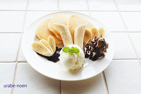 千葉県館山市佐藤商店の完熟バナナを使用したパンケーキを年間を通じて提供しています浦部農園産バナナ「茂原万助バナナ」も登場いたします