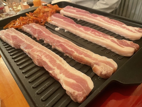 サムギョプサルセット豚バラ2枚レタスキムチ・青唐辛子・ニンニク