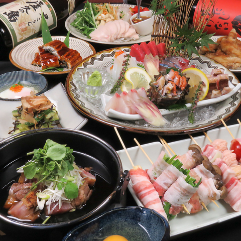 厳選鶏・鮮魚刺、串…気軽な宴会から、各種宴会、接待まで幅広く対応いたします。飲み放題付き5000円~