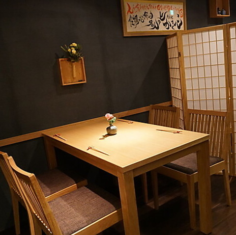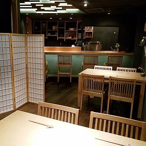 落ち着いた雰囲気のお店です。店内は和空間で癒しの雰囲気です。ぜひゆったりとお寛ぎください。落ち着いた雰囲気のお店です。仕切りがあるので周りを気にせずお食事が楽しめます。