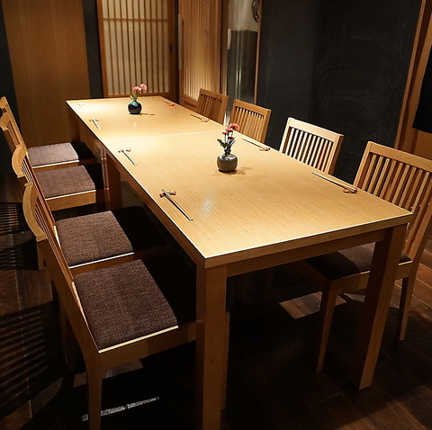 宴会におすすめなテーブル席。2~12名様までご利用いただけます。仕切りがあるので、ゆっくりお食事ができます。おまかせコースをご予約の方限定の接待向き完全個室もございます。※テーブル席ご利用は3名様以上を優先ちさせていただきます。