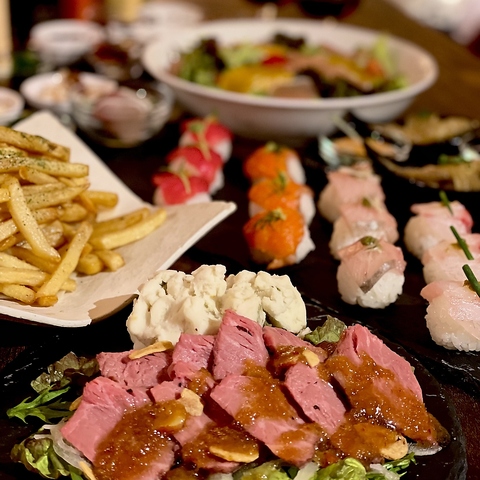 ウニやいくらなどが乗った豪華【こぼれパフボール寿司】がコースで新登場!贅沢に使用した食材で華やかなメインを彩ります!また迫力満点の蔵王Japan Xのスペアリブやデザート3種は女性にも嬉しい欲張りコースとなっています。少人数から大人数まで、歓送迎会や女子会、その他ご宴会にご活用ください。クーポン利用で5500円→5000円に♪