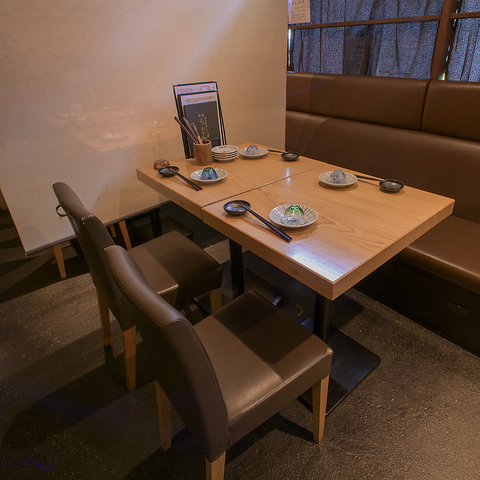 片側がソファー席になっているテーブル席です。全席、お隣様とはパーテーションで仕切る事もできます。※奇数名様でのネット予約はお一人様がお誕生日席をご利用頂く事があります、接待等ご都合が悪い場合は直接お店に電話確認ください。