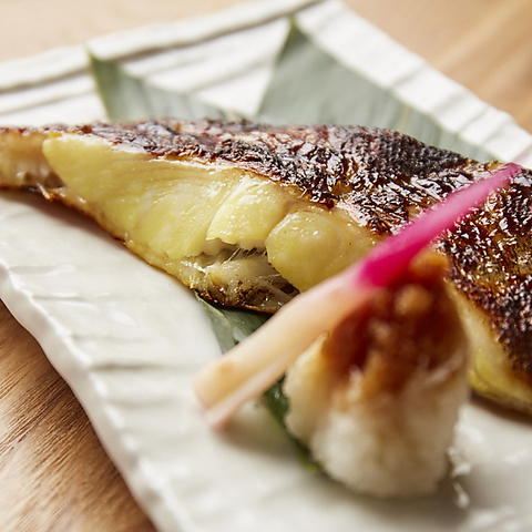うわの空の『西京焼き』は、店主が手間ひまを掛けてご用意している料理の一つです。新鮮なカレイや銀ダラを切り身にし、秘伝の西京味噌に漬け込んだ後、味噌をきれいに落として、ふっくらと焼き上げます。味噌の程良い甘みと塩みが魚の旨味を引き立てた絶品の『西京焼き』。ぜひお召し上がりください。
