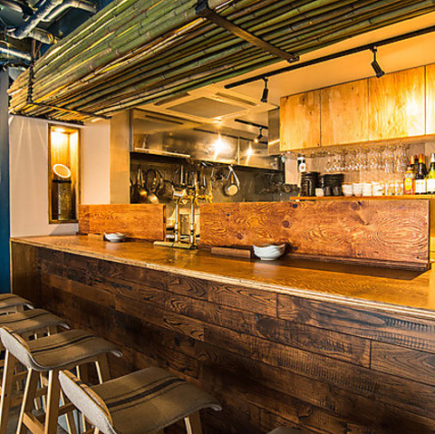 手作りの竹細工が施された落ち着いたカウンター席、温もりと親しみを感じさせる空間。大切なあの人&おひとり様でゆったりとした時間を過ごせる特別なひと時をご提供します♪