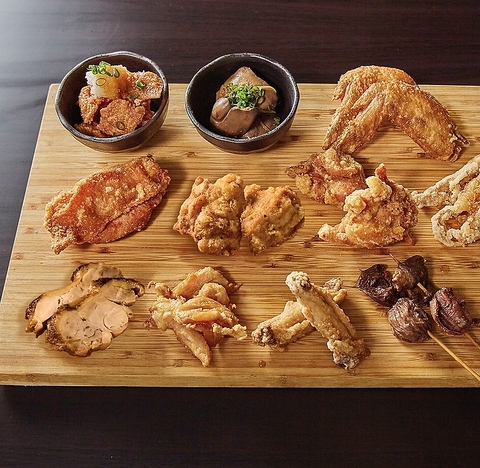 ももザンギ/にんにくももザンギ/にんにくむねザンギ/手羽先ザンギ/タレ漬け手羽中ザンギ/ヤゲン軟骨/鶏チャーシュー/せせり/鶏皮ポン酢/レバー甘辛煮/鶏モツ串揚げ(ハツ&砂肝)