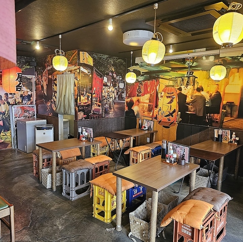■気の置けない仲間との飲み会や女子会に!■屋台をイメージしてつくられた店内は、昔懐かしい昭和レトロな雰囲気で思わずほっこり。気の置けない仲間との飲み会や女子会はもちろんのこと、初めて出会った者同士でも自然と会話が弾んで仲良くなれる不思議な魅力が!肩を寄せ合いわいわいと飲んで笑ってお楽しみ下さい♪