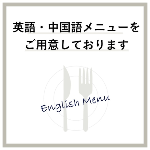 英語、中国語のメニューもご用意しております。