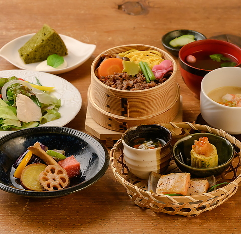 きのわオリジナルの京わっぱをぜひご堪能ください。ランチセット2,200円より