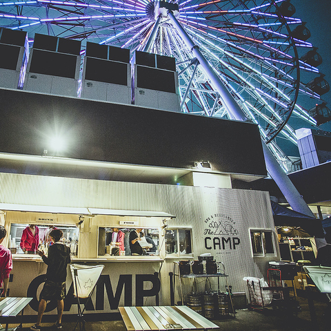 THE CAMP会場から見上げる観覧車は雰囲気抜群! 夜はネオンでライトアップされ会場の雰囲気も最高です!
