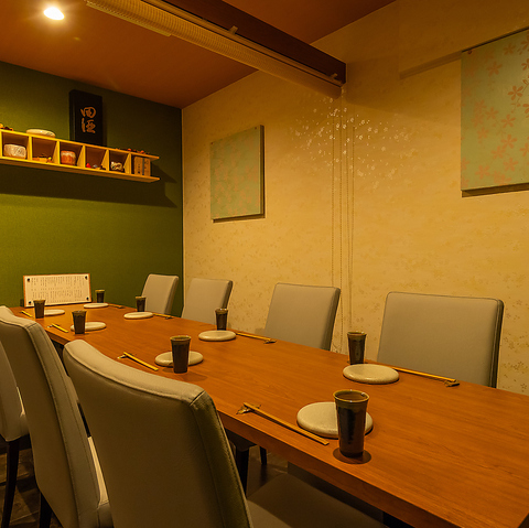 茶室をイメージしたゆったりと落ち着ける完全個室です。最大12名様までご利用頂けます。完全個室をご利用の場合は個室料として10%頂戴いたします。