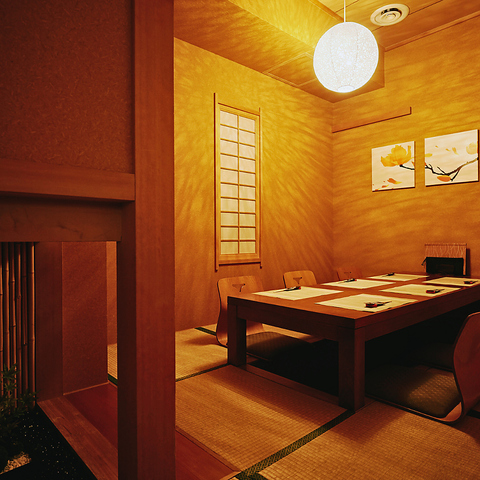 ~16名様までご利用可能な落ち着きのあるコンセプト和室で親しい方と、周りを気にせずプライベートな空間でゆっくりとお酒とお料理をお愉しみいただけます。【接待、慶事、同伴でのご利用に◎】