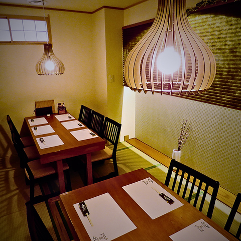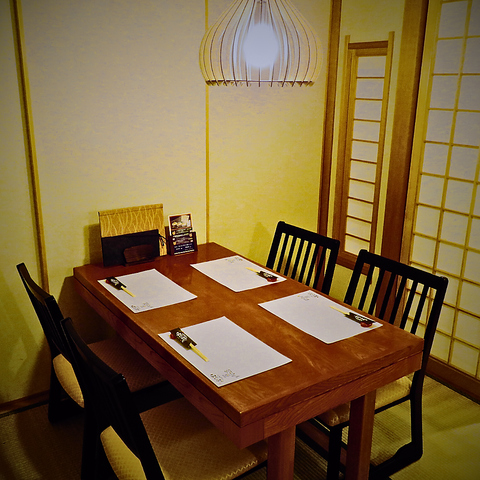 ~6名様までご利用可能なテーブル席。(連結可能)モダンでゆとりのある和空間が広がり、落ち着いた雰囲気の中でお食事を味わうことができます。【プライベート宴会、女子会、デートでのご利用に◎】