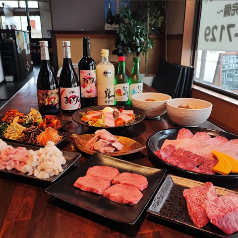 人気部位を集めたセットや多彩な一品料理をご用意♪日本酒や梅酒などドリンクも豊富で焼肉宴会を満喫できる