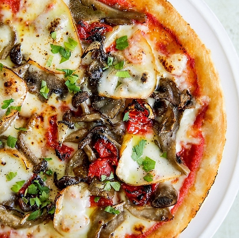 人気のピザやソーセージなどのおつまみ料理もご用意しております。「セミドライトマトと4種のきのこのピザ」は、食べやすいサイズで、皆様でシェアでも、お一人様でも楽しんでいただけます。