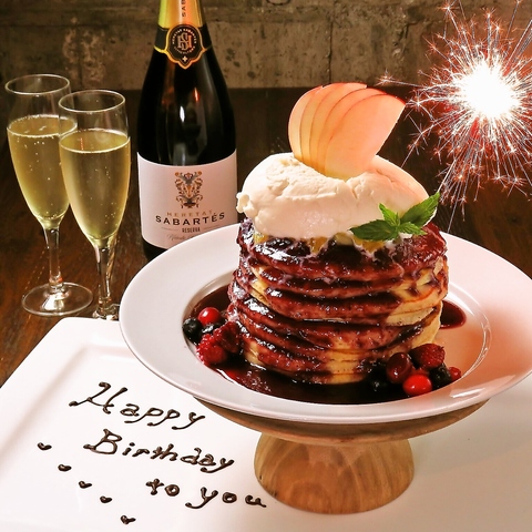 大人気!美味しさ間違いなし!当店自慢のバターミルクパンケーキで、お友達の誕生日・家族のお祝いごと・パートナーとの記念日に、サプライズ提供してみてはいかがでしょうか?!見た目にも華やかで可愛らしく、大切な方にも喜ばれること間違いなし◎タイミングなどのご要望の際はスタッフにご相談ください♪精一杯サポートさせて頂きます。