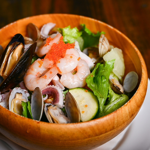 長年研究を重ねたキャンティのドレッシングは、お店の代名詞としてお客様に愛されている一品です。人気No.1は新鮮な魚介をトッピングした「カリブサラダ」!秋は旬のキノコと高原レタスを使用した「森のサラダ」もおすすめです♪