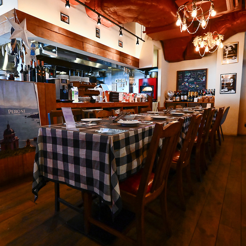 イタリアの大衆食堂をイメージしたカジュアルな雰囲気で、明るすぎない照明と落ち着いたBGMでゆっくりと食事をお楽しみいただけます。