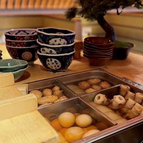 寒い季節の定番《おでん》 寿司や天ぷらの合間に温かいおでん盛り合せを肴に一杯いかがですか。