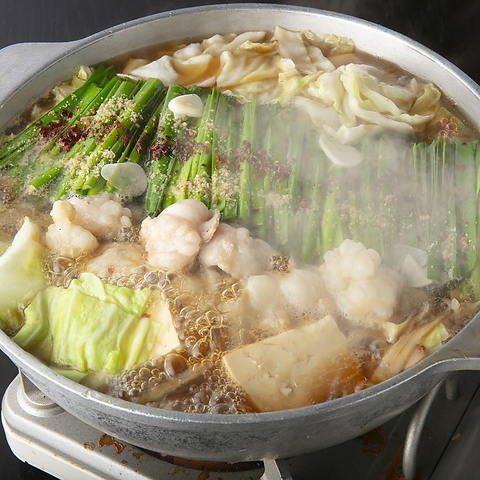 自慢の国産牛もつ鍋!お味も塩・味噌・醤油からお選びいただきます。自家製の出汁でお召し上がりください