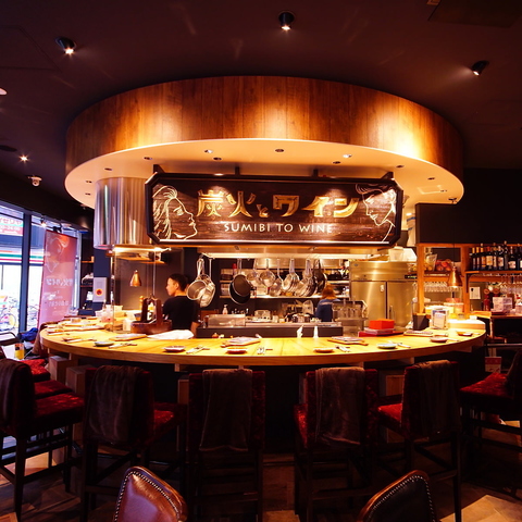 『大人の酒場』の雰囲気にぴったりのゆったりと寛げる空間!大人数様の宴会も、友達同士のプチ飲み会も、どんなシーンにも使えます♪炭火とワイン名物のエンドレス飲み放題も、ゆったり時間を忘れて楽しもう♪
