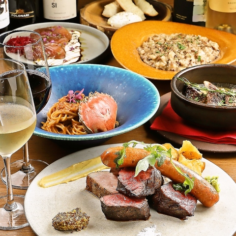 炭火とワイン名物のこだわりの炭火焼MENUの数々♪ソースは常に最大限のおいしさを追い求め研究中!!オレイン酸55%以上の大分豊後和牛の厳選したもも肉や鴨一筋操業100年以上の老舗大阪松原の河内鴨!低温でじっくり焼き上げます!女子会・誕生日・デート・歓迎会・送別会など、美味しい料理とお酒で盛上がろう!