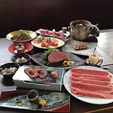 『和牛炙り寿司』『和牛のカツレツ』『和牛ランプの塩釜焼』『和牛サーロインの焼きすき』等々、牛肉料理尽くし至極のコース。こだわりぬいた一品一品をリーズナブルな価格でご堪能あれ。焼肉では味わう事が出来ない新しい牛肉料理の世界を・・