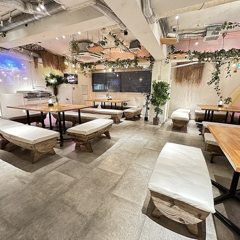 準備や片付け、天気の心配、当日の買い出し…などなど意外と面倒なことが多いBBQ。そんな方にオススメ!渋谷駅徒歩2分で天気の心配無用のBBQ!本格的なバーベキューグリルでお楽しみください!もちろん貸切BBQも!木材や木目、緑を活かしたガーデンをテーマにした内装で温かい雰囲気。真新しいお店で気軽に飲み会を☆