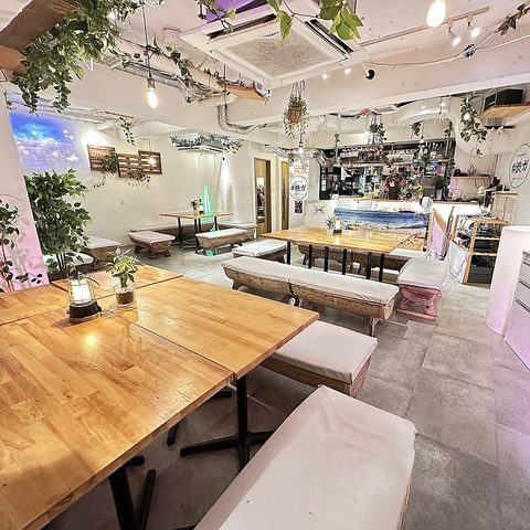 緑や木材を活かしたガーデン風の店内は、天井も高く開放感抜群☆渋谷駅から道玄坂をまっすぐ2分という集合にも好立地!大人数の貸切には最高の立地!