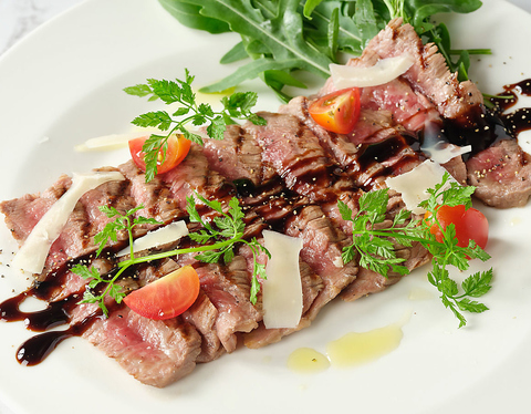 チキンのグリル オリジナルスパイス掛け/匠味豚ロースのグリル いぶりがっこのラビゴットソース/黒毛和牛のタリアータ バルサミコソース(写真)