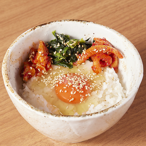 ほうれん草ナムルとチャンジャが入った焼肉屋さんのたまごかけご飯